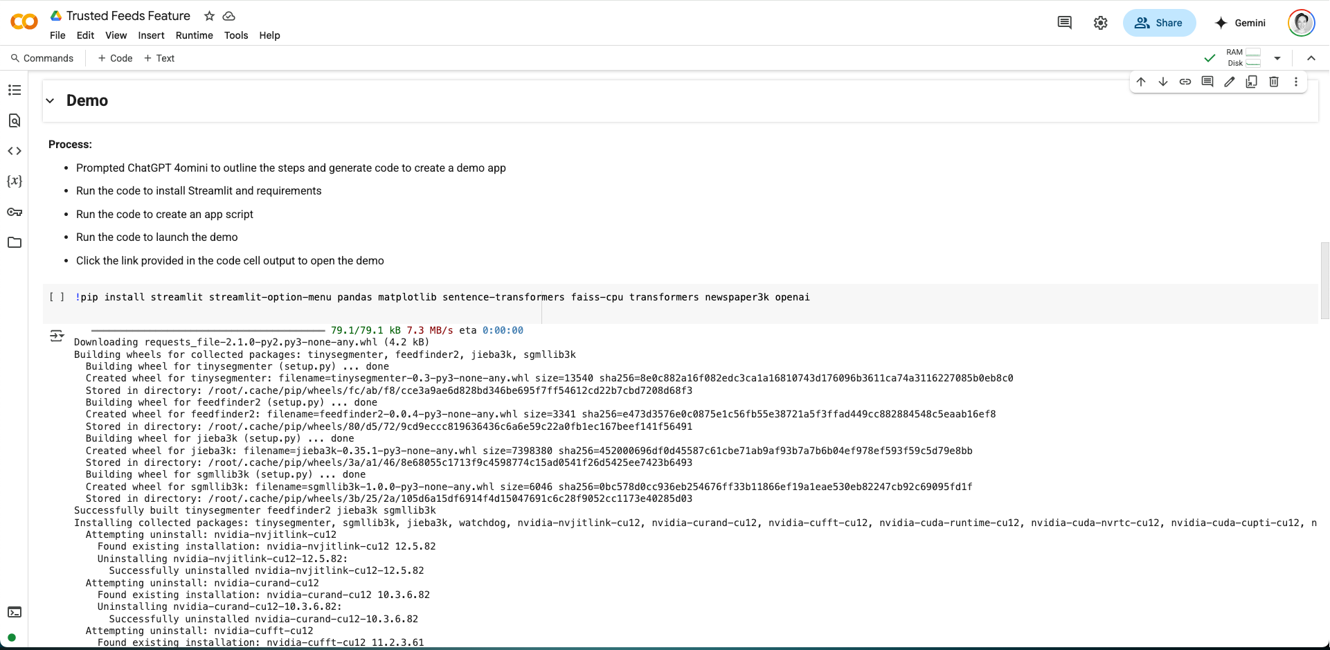 Now that I knew this area was a pain point and had a rough idea of how I might solve it using AI, I needed to test it out to see if the AI model could function the way I intended. I did this by building a Notebook that allowed me to write Python code and run it to quickly test the functionality of the model without needing to set up a local environment or get an engineer to test it.